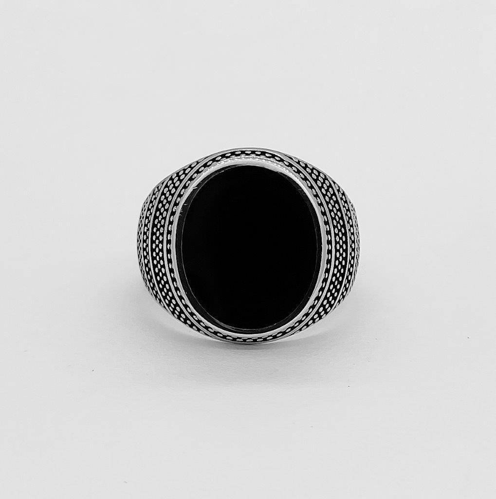 This Sterling Silver Ring features a bold Black Onyx inlay